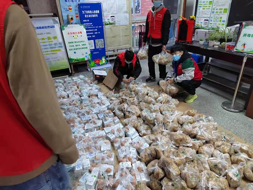 對待裝餐,老師們像對待科學一樣嚴謹。為了最快速度讓學生吃上熱騰騰的飯菜,博導、沉積地質研究院研究員郎咸國所在的小分隊吸取其他小分隊的經驗,將每種早餐的裝盤順序、裝餐人的站位、大家之間的配合都進行了研究!霸顼埼覀円o他們裝饅頭、雞蛋、牛奶,先裝哪個,誰來裝誰來放,我們都形成了方案!崩上虈硎,他也被“00后”學生志愿者感動,“我們學校這么快完成3萬多人的核酸檢測,沒有大家的通力合作,幾乎是不可能的任務!