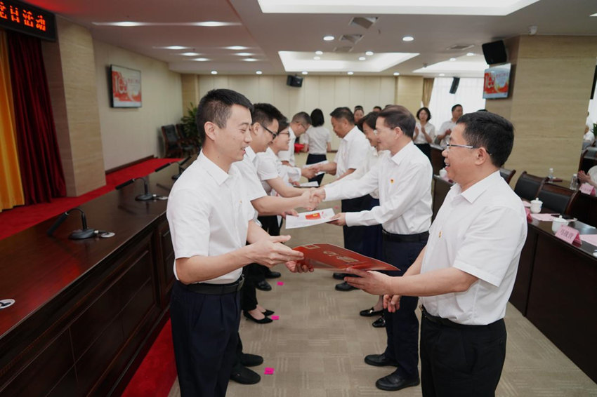 四川商投集團領導為新發展黨員發放“政治生日賀卡”。四川商投集團供圖