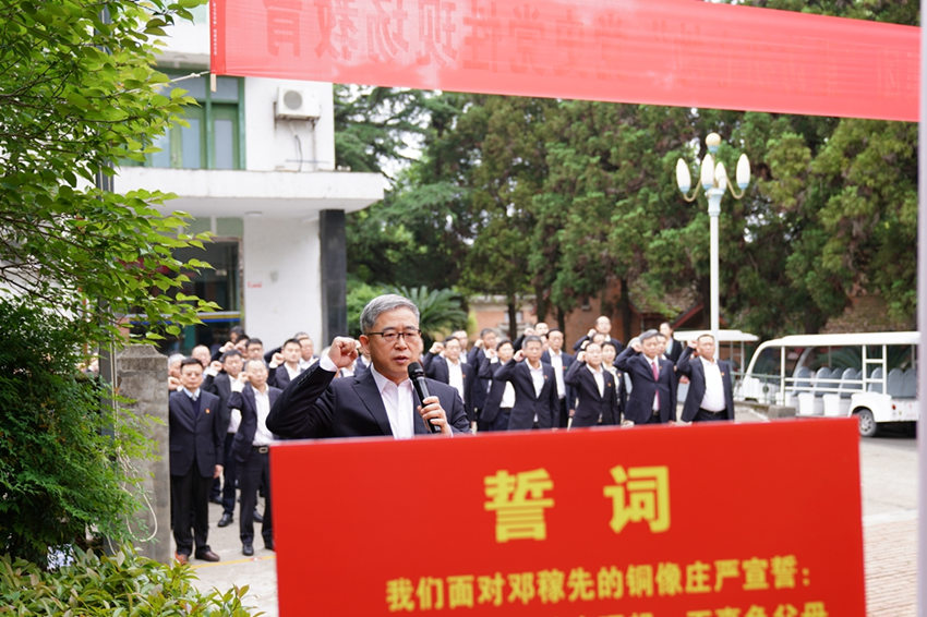 華西集團總部中層黨員干部到集團建設的“兩彈城”開展黨史黨性現場教育,重溫入黨誓詞。華西集團供圖