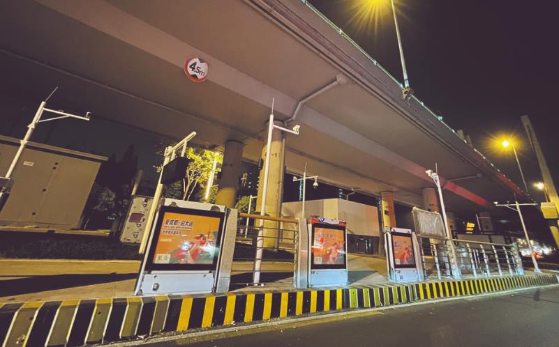 從雙橋子公交站出來,沿蜀都大道一路向東,在高架橋下的道路中間,鋪劃有快速公交專用道,BRT專用的字樣清晰明顯。繼續向東行駛,就來到塔子山公園站,該站臺設計與西軸線日月大道的K5線相似,站臺邊上有屏蔽門,站臺內的LED顯示屏等設備也已經安裝完畢。