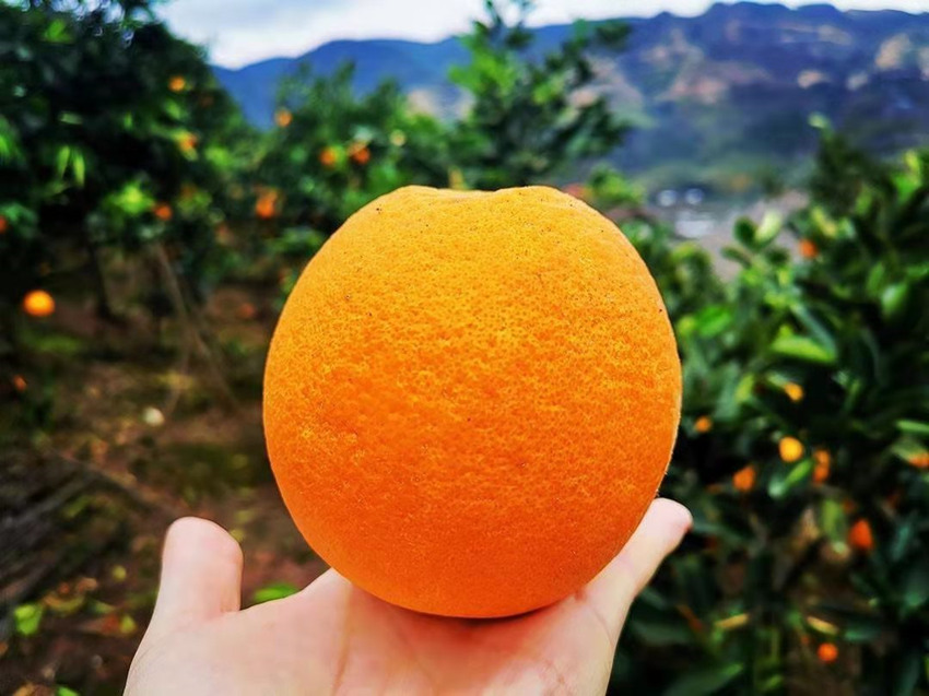 在納盤一王姓老人壩子歇腳時,主人讓凳請茶之后,用竹盤端出了七八個紅通通的甜橙,“上午才摘的,嘗新嘗新!”——“嘗新”是土話,就是吃新鮮果蔬。之后又遇幾戶農家,都享受了同樣的“嘗新”——用橙橘接人待客,已成這一方人家新的“風俗”。
