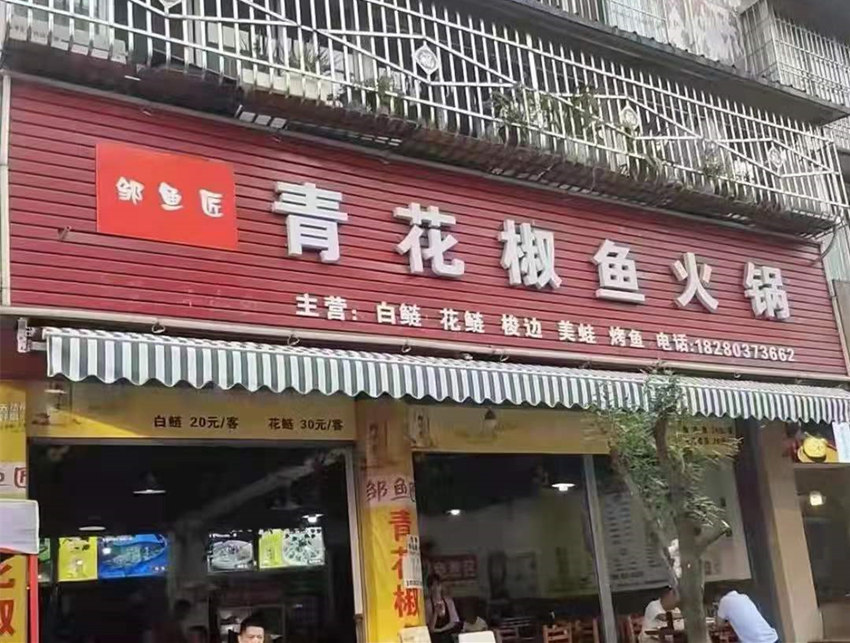 鄒魚匠青花椒魚火鍋的門店招牌。受訪者供圖