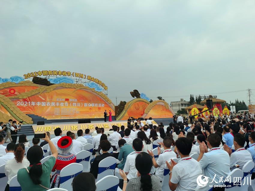 接下來的9月23日,2021年“中國農民豐收節”(四川)群眾聯歡活動在德陽市廣漢市三星村舉行;顒映浞秩谌肓碎L江流域和三星堆等主題元素,F場還舉行了農業農村改革優秀案例頒獎儀式、連線各地慶豐收場景、開鐮啟動儀式等活動,穿插了極具鄉土特色的民俗歌舞表演。
