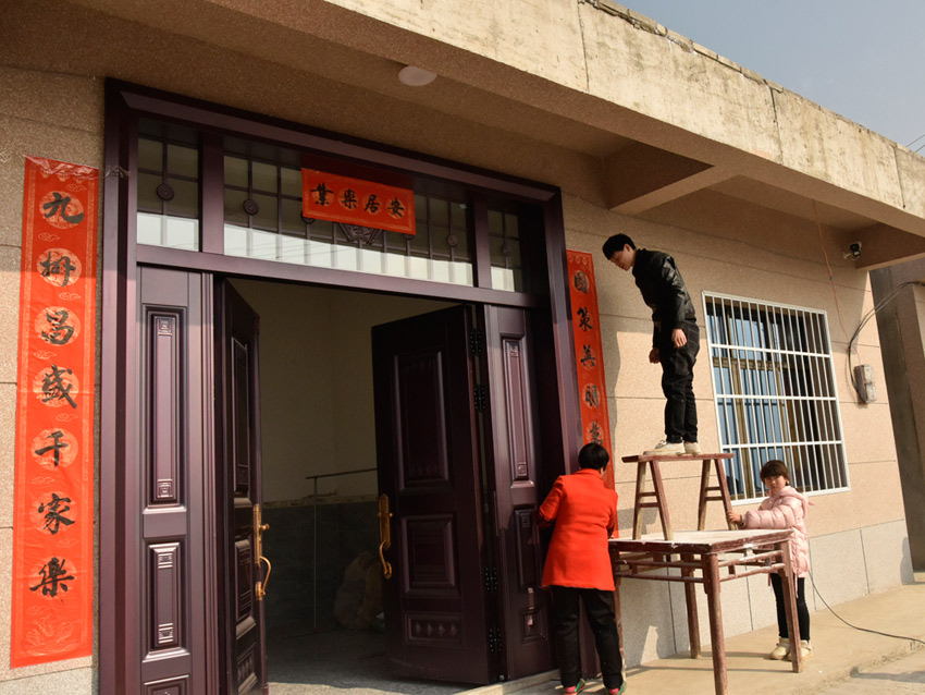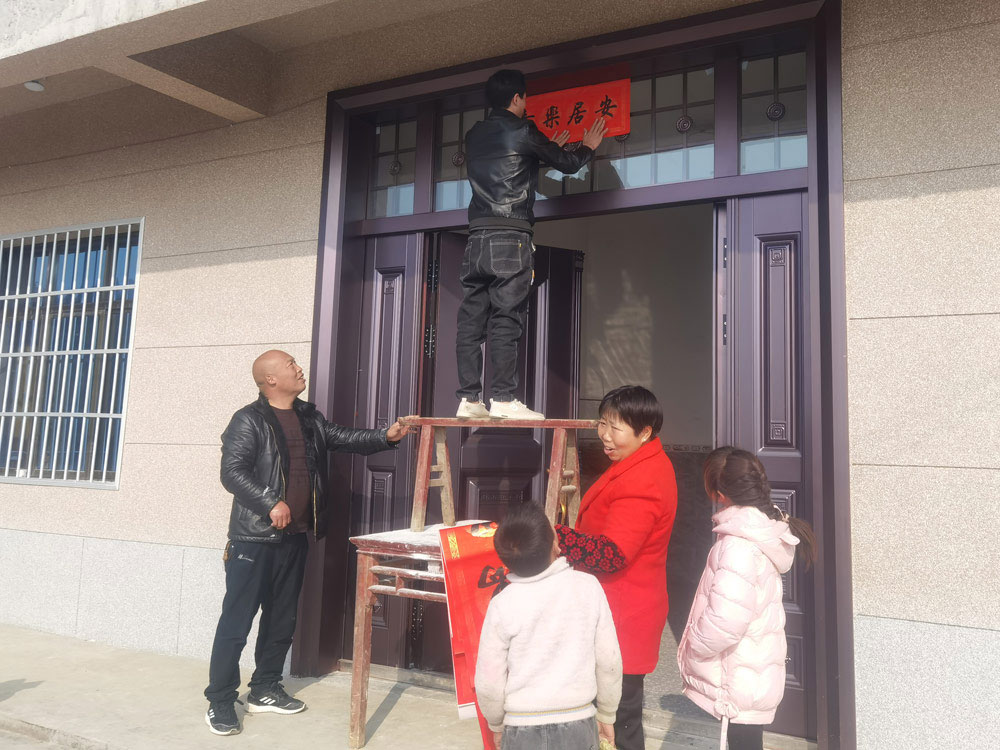 陳華彩正在貼紅紅的春聯。他一邊貼,一邊述說著心中的感激:“我現在不僅居住安心,生活也很開心。感謝黨和政府的好政策,今年在這里過年,感覺很幸福!”孩子們看到貼春聯,都好奇地圍過來看。大人們趁機給孩子講貼春聯的習俗和故事,告訴他們要傳承好老祖宗留下來的過年文化,更要懂得感恩回報的道理。當大人爬高貼春聯時,小孩子就小心用力地扶好凳子,保護好大人的安全。一雙稚嫩的小手、一對單薄的肩膀,也知道扛起責任守護親人,在過年的氣氛中,中國人的美好希望在代代傳遞。