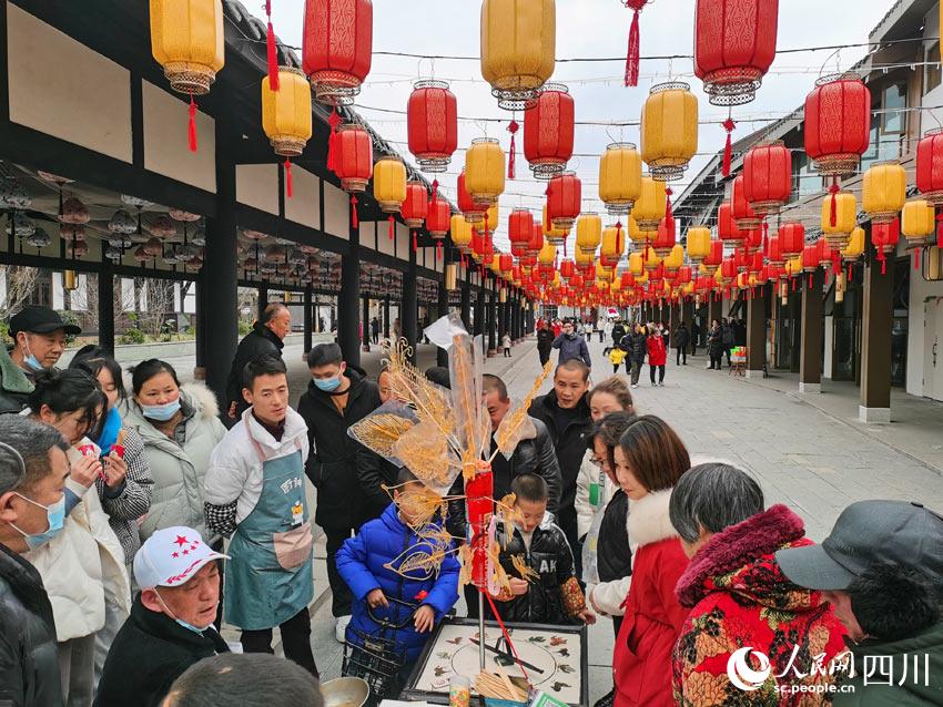 人們圍在糖畫攤子旁邊。人民網 劉海天攝
