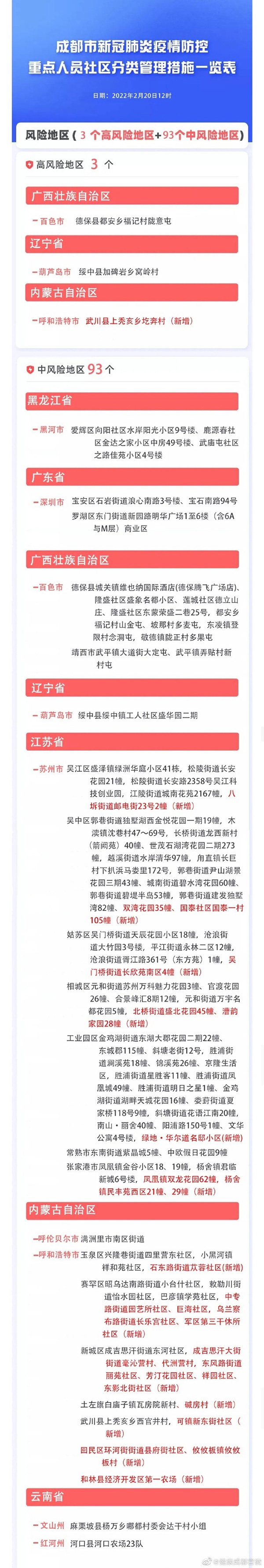 人民網成都2月20日電 (王波)據成都市衛健委消息,今日,成都市新冠肺炎疫情防控重點人員社區分類管理措施發布。