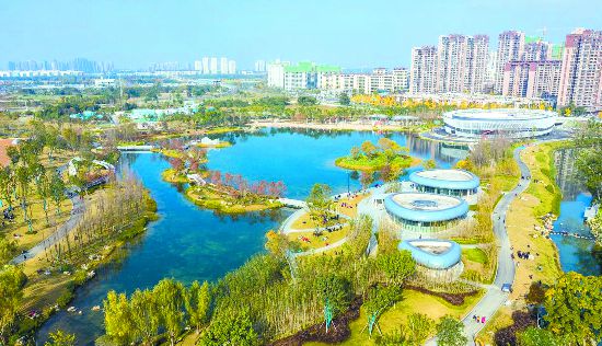 記者了解到,整個項目建設了生態海綿體系促進排污蓄雨,實現了雨水散流滯蓄與污水零排放。同時,項目還針對水域、水陸交錯帶、濱水陸域三大要素,延續陸水統籌治理的思路和師法自然的理念,打造體系完整、功能協調、良性循環的生態系統,盡顯水陸交融的鮮活生態活力。
