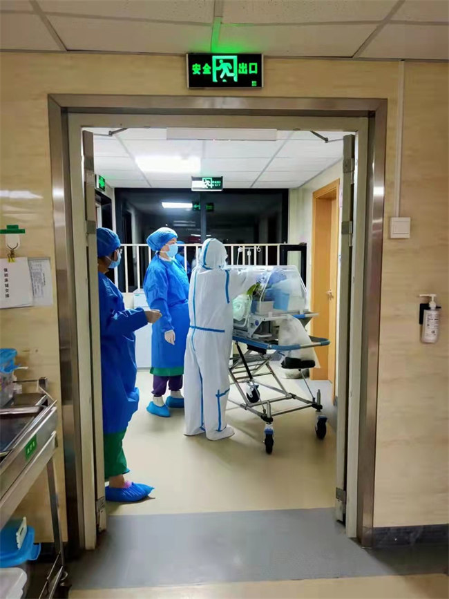 按照防控工作要求,所有工作人員三級防護,23日凌晨6時左右,周靚順利生下一個2.96公斤重的男寶寶。很快,新生兒科將寶寶用專用保溫箱轉運至新生兒科照顧,而周靚則按照防控要求轉回隔離病房單間繼續觀察。