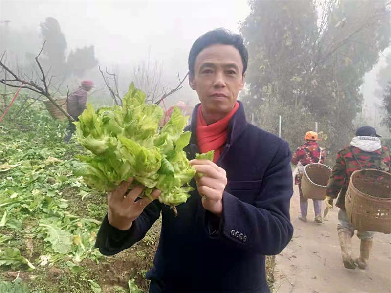 周義雙網絡推銷蔬菜。蒲正軍攝
