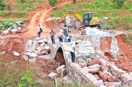 如今,紅軍入川第一橋(巖桑溝興橋)項目納入古藺縣“四渡赤水”紅色文化傳承帶的項目。在離橋一百米遠的地方,工人師傅們正在修砌橋墩、鋪橋面,干得熱火朝天!斑@座橋已經建了10多天了,現在橋拱已經初具雛形,等橋修好了,方便游客站在新修的橋上欣賞‘紅軍入川第一橋’,屆時,我們這個山溝溝也鬧熱起來了!闭谛迾虻牟軒煾嫡f。
