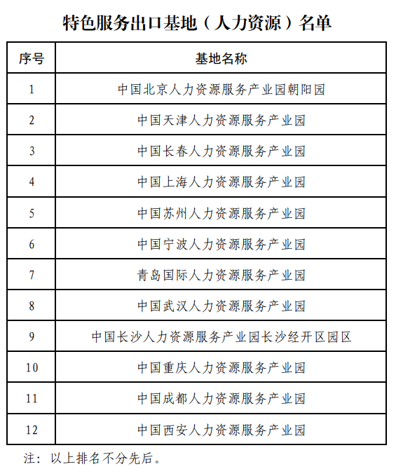 其中,中國成都人力資源服務產業園上榜特色服務出口基地(人力資源)名單如下: