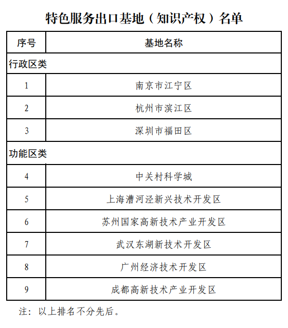成都高新技術產業開發區上榜特色服務出口基地(知識產權)名單,如下圖: