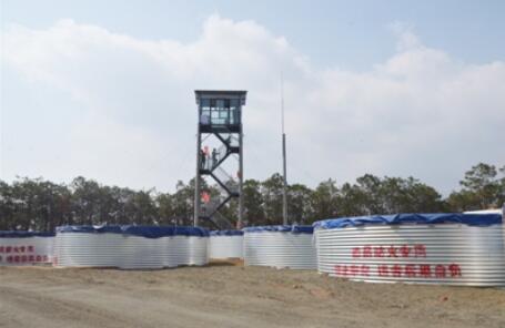 胡東海介紹,德昌縣在阿月村蔣家山建設了一條26公里的防火通道,貫穿阿月村重點林區!皬娜ツ11月開始,我們充分利用埡口水源優勢,每隔300~500米布置一個鋼制水池,道路兩側建有34個。同時,在蔣家山頂建了一個鋼制水池集群,有鋼制水池37個,每個蓄水33噸,總蓄水約1200噸!