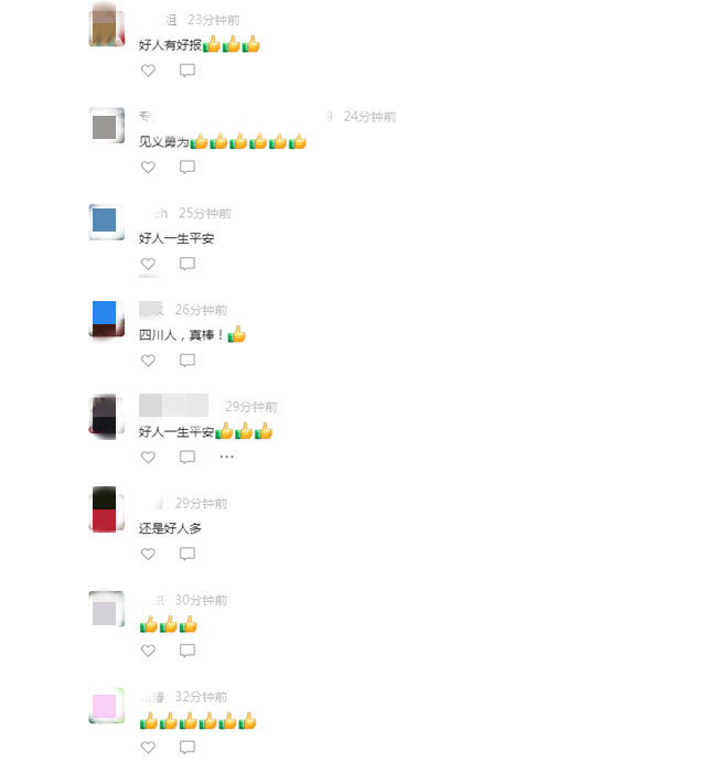 網友們看到大家齊心協力救人的視頻后,紛紛點贊——“見義勇為真英雄”“這就是我們中國人的力量”“四川人,真棒!”(王洪江、劉菲、廖輝、毛。