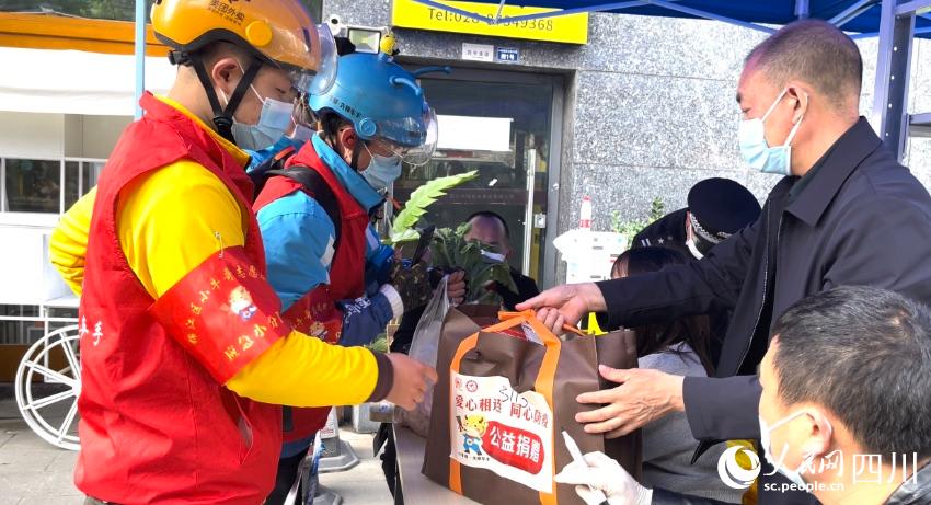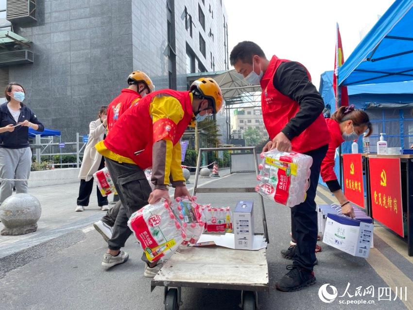 錦江區牛市口街道“小牛哥·先鋒車手”志愿服務隊為封控小區居民送物資。高林雅攝