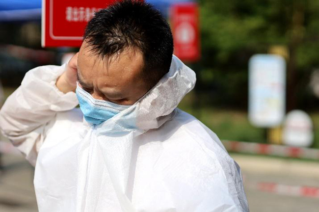 奮戰在各個核酸檢測點位的黨員醫護志愿者,短則3個小時、長則5個小時持續采樣,中間沒有休息時間。無論護目鏡布滿霧氣,無論身上被防護服捂得又潮又濕,他們都咬牙堅持。