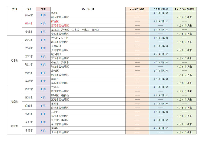 對7天內有B類地區旅居史的來(返)川人員,按以下方式實施分類管理: