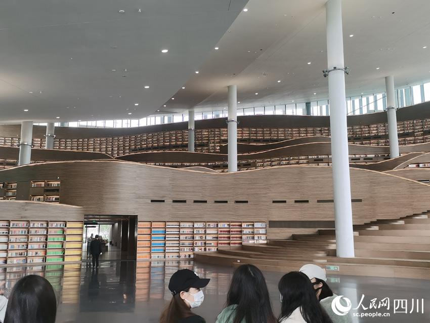 成都天府人文藝術圖書館內的“書山”。人民網 劉海天攝