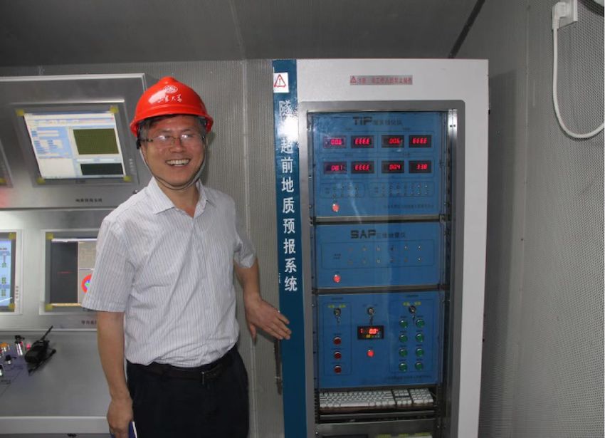 山東大學李術才院士介紹相關設備。成蘭鐵路公司供圖
