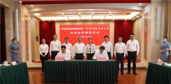 4月27日,江陽區教育和體育局與瀘州老窖天府中學舉行合作辦學簽約儀式。據悉,此次簽約合作辦學,瀘州市梓橦路小學漁子溪學校加掛瀘州老窖天府中學附屬小學校牌子,將與天府中學聯合辦學。