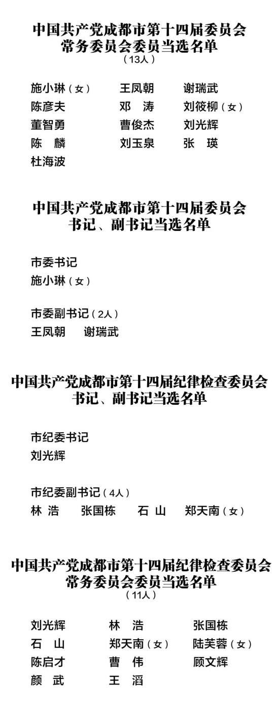 成都市委十四屆一次全會舉行 施小琳當選成都市委書記