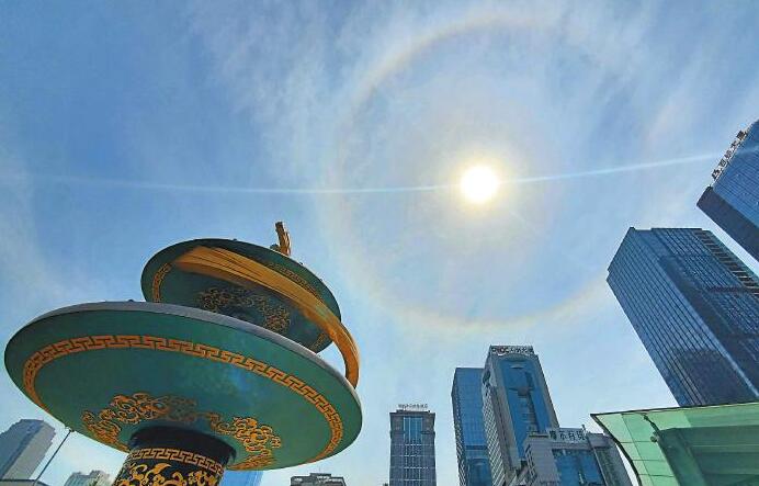 5月4日,記者在天府廣場拍到日暈。 四川日報全媒體記者 韋維 攝