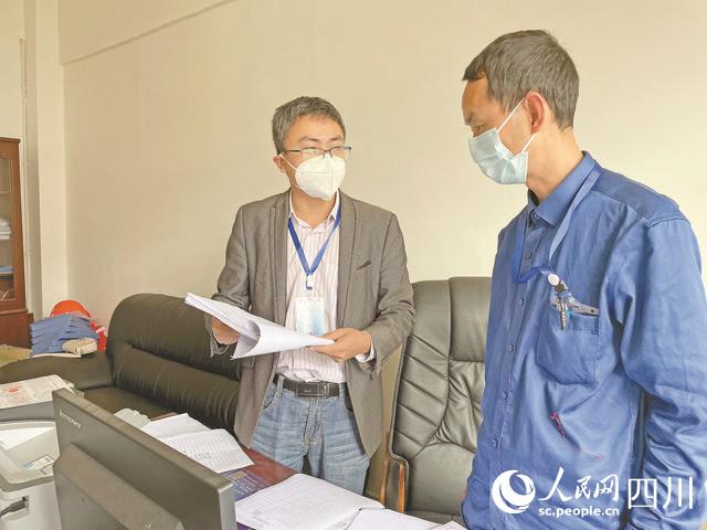 正在開展排查工作的廖皓宇(左)。杜暢攝