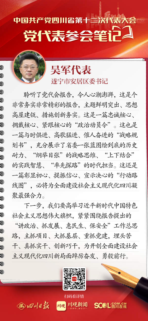 黨代表參會筆記丨遂寧市安居區委書記吳軍:為開創全面建設社會主義現代化四川新局面勇毅前行