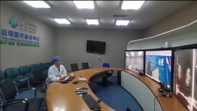 四川省人民醫院遠程會診中心連線應急救援小分隊,對寶興縣人民醫院的一例地震骨傷者遠程會診。院方供圖