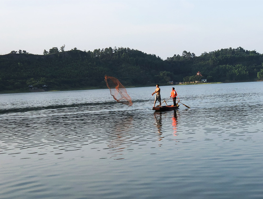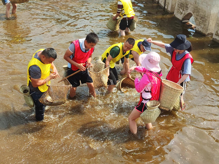 游客參與水產捕撈項目。隆昌市古湖街道供圖