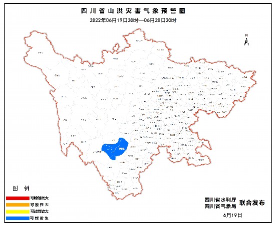 6月19日,四川省水利廳和四川省氣象局聯合發布山洪災害藍色預警。