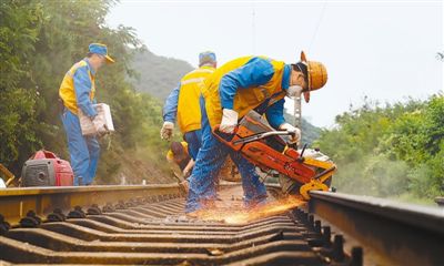 中國鐵路昆明局集團施工人員在成昆復線甸尾至廣通區間作業。