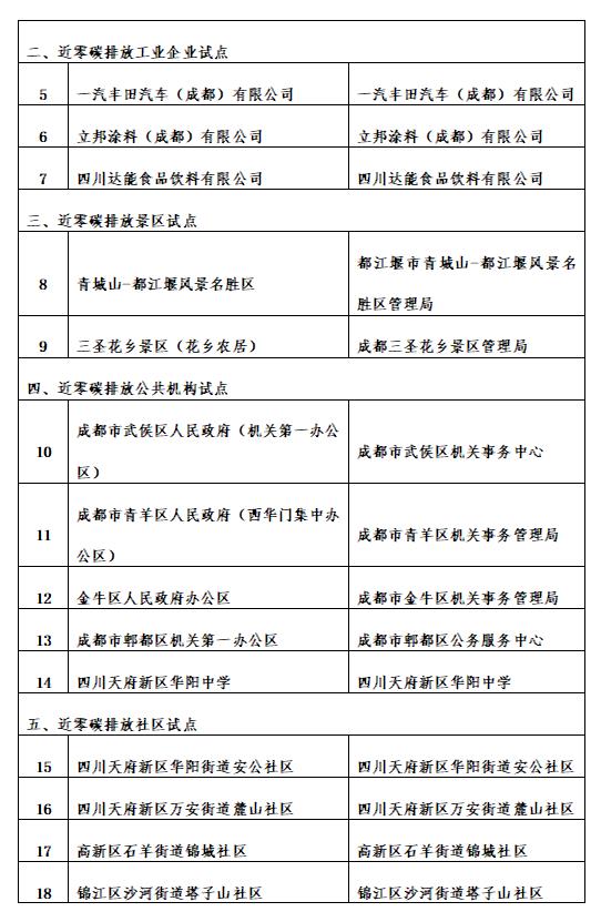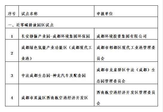 成都市近零碳排放區試點創建名單(第一批)如下: