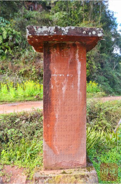 位于紅軍樹左側,立著一塊指示牌上面寫著:1935年冬,中國工農紅軍長征四渡赤水在古藺境內轉戰54天,紅軍右縱隊一、九軍團分兩路進入黃荊,在此樹下埋鍋造飯、住宿扎營、書寫標語,播下紅色革命種子,后這棵百年老樹被稱為紅軍樹。