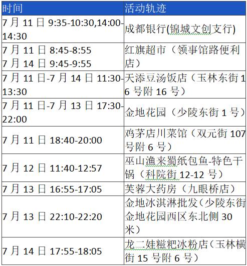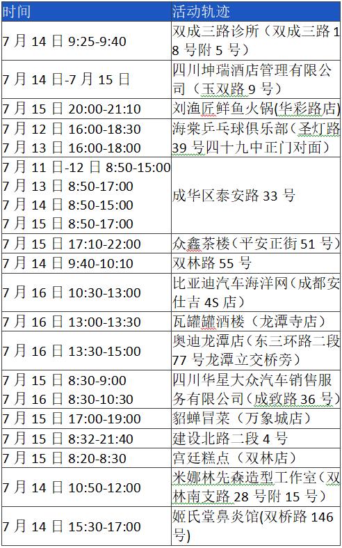 《成都市“0715”本土疫情病例活動軌跡風險點位一覽表》