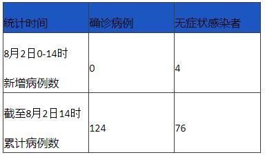人民網成都8月2日電 (王波)據成都市衛健委消息,8月2日0-14時,“07·20”疫情無新增本土確診病例,新增本土無癥狀感染者4例。截至8月2日14時,本起疫情累計報告本土確診病例124例,本土無癥狀感染者76例。