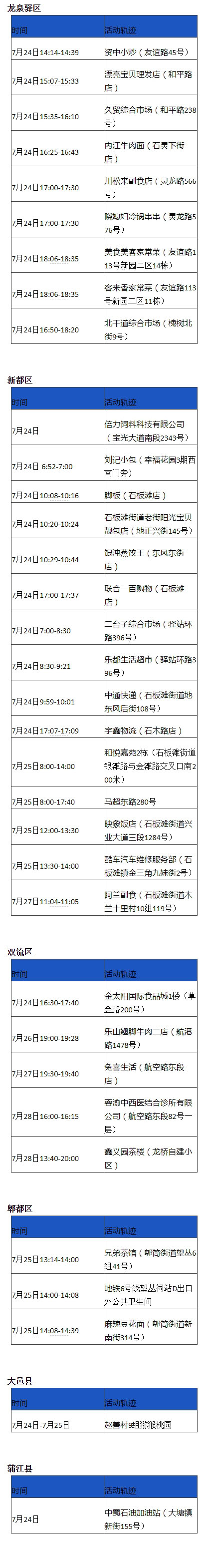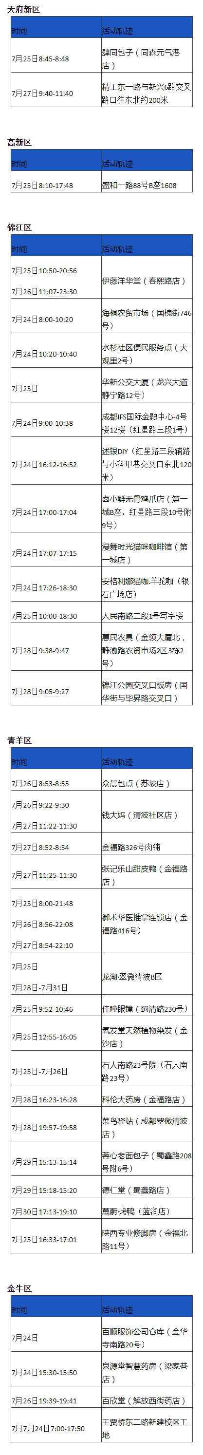 《成都市近期本土疫情病例活動軌跡風險點位一覽表》