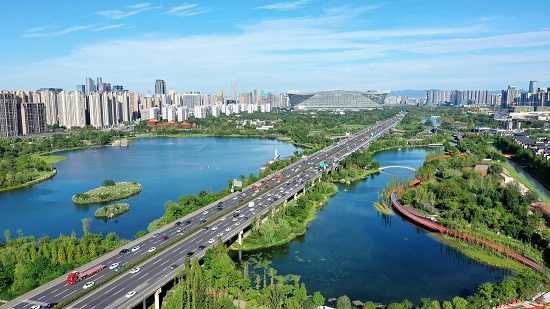 在生態營城方面,成都興城集團還高標準打造133平方公里公園城市先行示范區——成都環城生態公園,建成621公里多級綠道體系,整體連貫、全環閉合的100公里一級綠道及沿線“一橋一景”的78座景觀橋梁全線貫通,2萬畝多樣水體、10萬畝都市現代農業逐步呈現,成為世界中心城區最大和頗具特色的多功能、開放式環狀生態公園。公園全面呈現后,修復城市水生態12.33平方公里,栽植樹木24萬株,育林面積超300萬平方米,每年可吸收二氧化碳超1900噸,滯塵超2000噸,釋氧超1400噸,可為上千萬市民人均增加綠地10平方米。城市棲息鳥類由384種增至511種,熊貓基地擴建區入駐大熊貓42只,綠道騎行、公園露營等綠色低碳新生活已成為城市生活的新亮點,開啟了全面探索具有中國特色的新型城鎮化道路、開創新時代幸福美好生活的成都全新實踐。