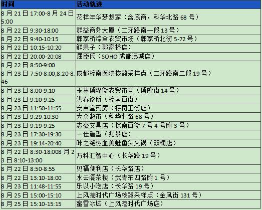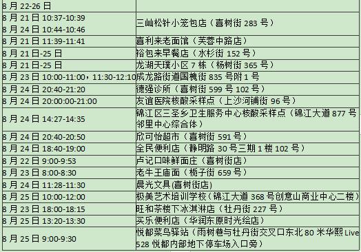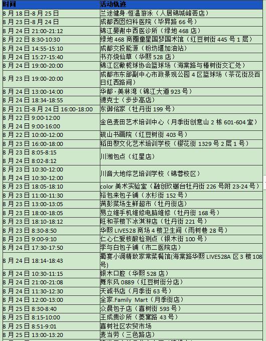 近期通報的本土病例及外地病例近期在蓉活動軌跡公布如下: