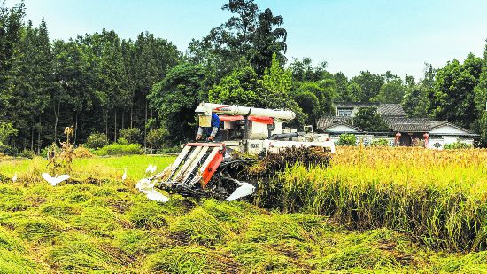 眼下,正值水稻收割時節,成都田野上,稻谷簇擁成一片金色海洋隨風搖曳,收割機來回忙碌地穿梭著,留下一排排整齊的稻茬,農戶滿懷收獲的希望和喜悅將沉甸甸的稻谷載回家。據統計,全市水稻播栽面積223.85萬畝,已收割72萬畝,進度達三成。