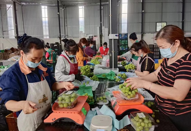 得到建行普惠信貸支持的彭州某農業有限公司加大采購力度,員工正在緊急分揀、打包貨品。建行四川省分行供圖