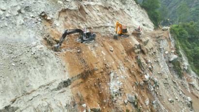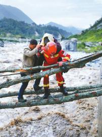 河水阻隔,救援人員砍樹架橋,安全轉移群眾;道路阻斷,挖掘機在絕壁上開鑿,爭分奪秒打通救援便道;直升機出動,開辟空中生命通道;山體滑坡,救援人員身背2歲幼童穿越百米懸崖生死線;國家衛健委在緊急增派醫學救援隊的同時,還派出國家級重癥專家組赴災區指導傷員救治,最大限度減少人員傷亡,為受災群眾筑牢生命安全防線。