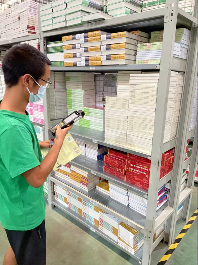 物流人員在分揀紅領巾圖書角的圖書?!渡倌陼r代》雜志社供圖