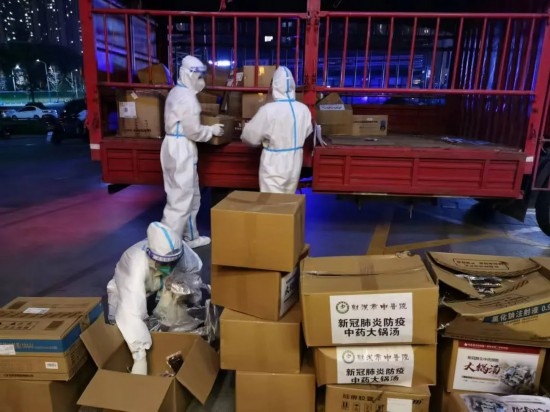 為做好此次中醫藥支援,內江市疫情防控應急指揮部專門印發通知專項部署,內江市中區、東興區、經開區、高新區應對疫情應急指揮部成立專項工作組,由分管區長牽頭,專人負責,統籌協調,提前確定接收對口支援中藥“大鍋湯”的地點, 確定分發高風險區域點位,全力做好接收、分發等工作,按時將50000余份中藥“大鍋湯”發放到97個中高風險區隔離群眾手中,確保集中隔離人員中醫藥干預全覆蓋。