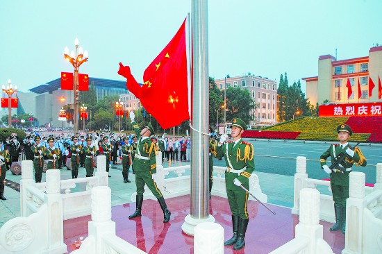 “昨天晚上12點就來到廣場了,是希望能在更靠前的位置感受升旗?!背啥寄持袑W高一學生龍彬表示,和同學在節前就約定,一起在新中國73周年華誕當天觀看升旗儀式,特別有紀念意義。