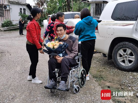 車停穩后,車門緩緩打開,甘宇的父母先后下車,搬出了輪椅。甘宇探出腦袋,欣喜地喊了聲:“婆婆!”廖代書喜不自禁,立即跑上前去,一把將甘宇摟在懷里,失聲痛哭?!坝顑菏萘撕枚唷被丶衣飞?,廖代書扭過頭,含淚對記者說。