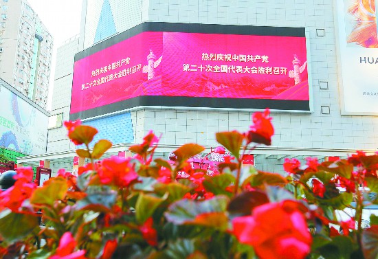 熱烈慶祝中國共產黨第二十次全國代表大會勝利召開!10月16日,成都各處裝扮一新,整潔的街道、鮮艷的花朵,交織成一幅絢麗的城市美景。道路兩側、社區街頭、戶外大屏,慶祝黨的二十大勝利召開的主題標語隨處可見,營造出清新、喜慶的氛圍,成為城市一道靚麗的風景線,引得不少市民駐足觀看,紛紛拍照留念。