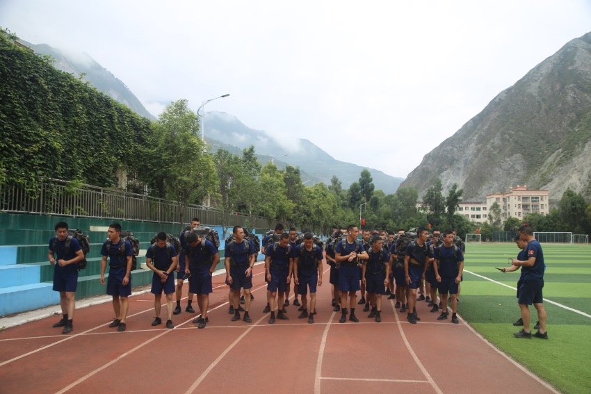負重五公里越野訓練(蔡茂強左二)。四川森林消防總隊供圖