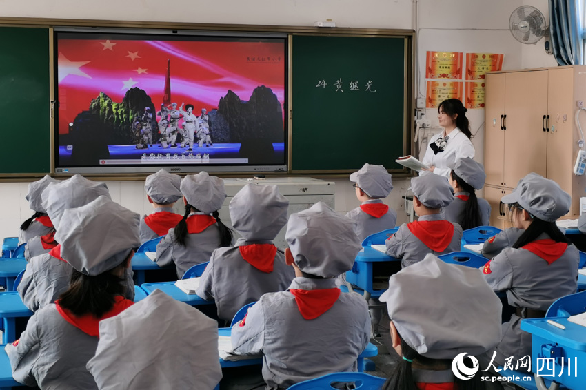 同學們學習課文《黃繼光》。人民網 劉海天攝
