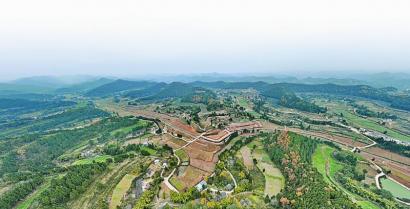 俯瞰南充市嘉陵區七寶寺鎮宮子嶺村高標準農田。四川日報全媒體記者李向雨攝